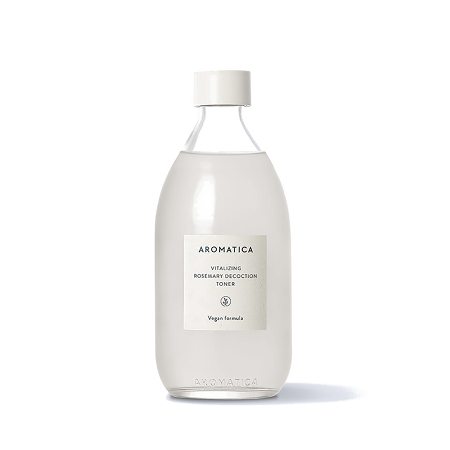 Aromatica – Vitalizing Rosemary Decoction Toner er sammensat med 99% naturlige ingredienser og rosmarin for også at genoprette hud og sjæl. Den vigtigste ingrediens i dette produkt er Rosmarinus Officinalis bladekstrakt og er populær for sin beroligende, antimikrobielle og antibakterielle virkning. Rosmarin beroliger den følsomme hud for at reducere stress. I kombination med det naturlige Aloe Vera-ekstrakt (Aloe Barbadensis Leaf Extract) som blandt andet har anti-inflammatoriske virkninger, sørger det for, at huden forbliver hydreret, hvilket gør denne toner perfekt til folk med en tør og følsom hud.